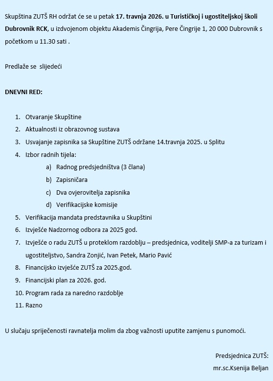 SKUPŠTINA ZAJEDNICE UGOSTITELJSKO – TURISTIČKIH ŠKOLA